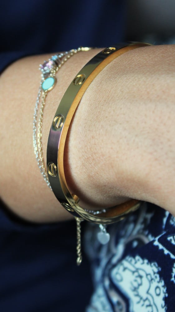 اسورة كارتير النسائية الفاخرة - استانليس ستيل مقاومة للماء - محيط 18 سم - مسمارين و مفك مرفق - لون ذهبي