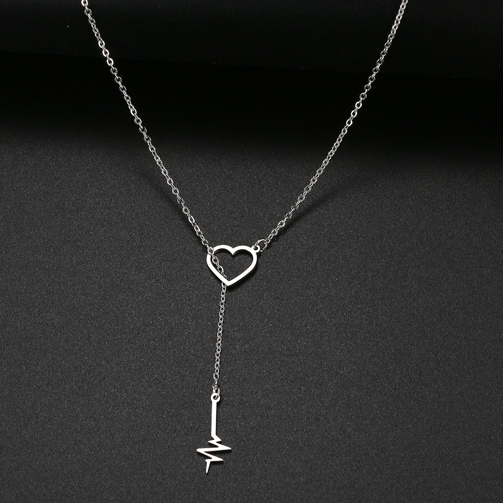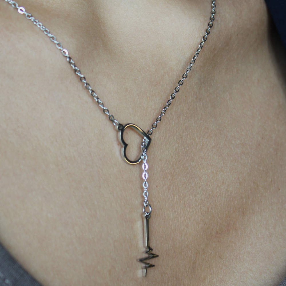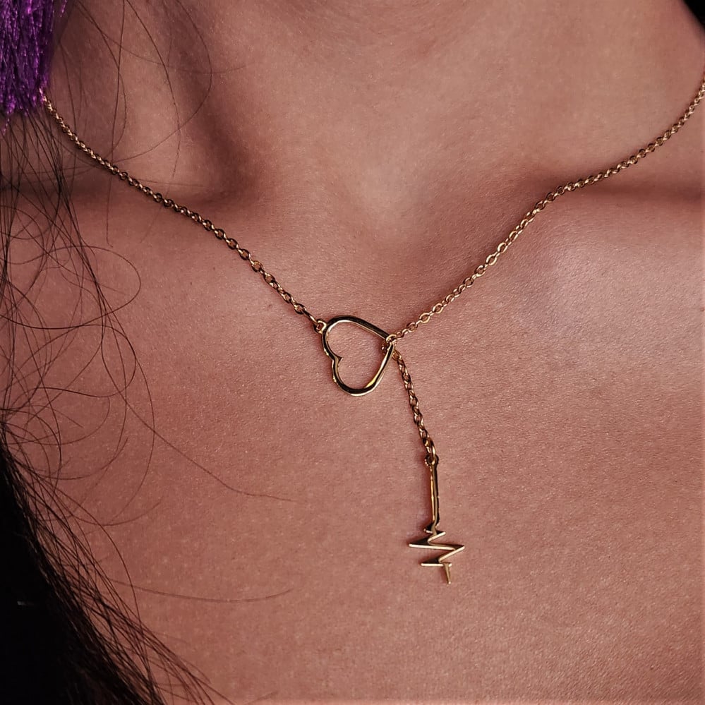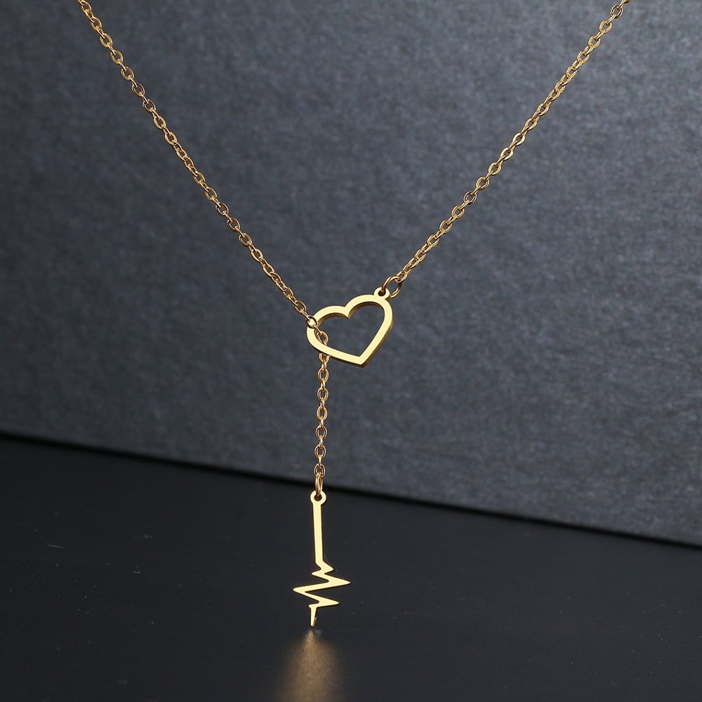 سلسلة القلب و قراءة النبض استانليس ستيل مقاوم للماء 45 سم - لونين ذهبي و فضي