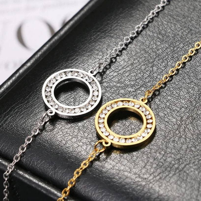 اسورة فاخرة نسائية حلقة دائرية مرصعة بالفصوص من الاستالنليس ستيل المقاوم للماء انيقة لون ذهبي و فضي
