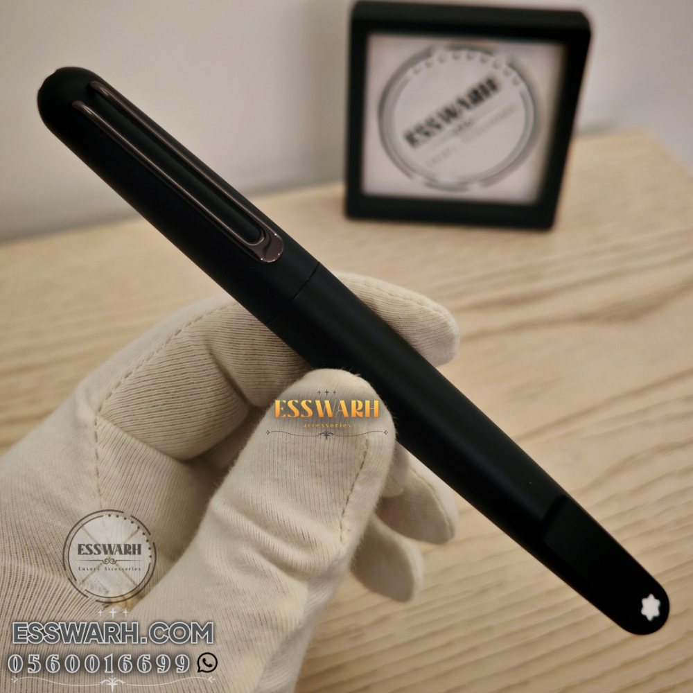 قلم مونت بلانك - اسود كامل مطفي - غطاء - كروم - موديل رقم MBM074