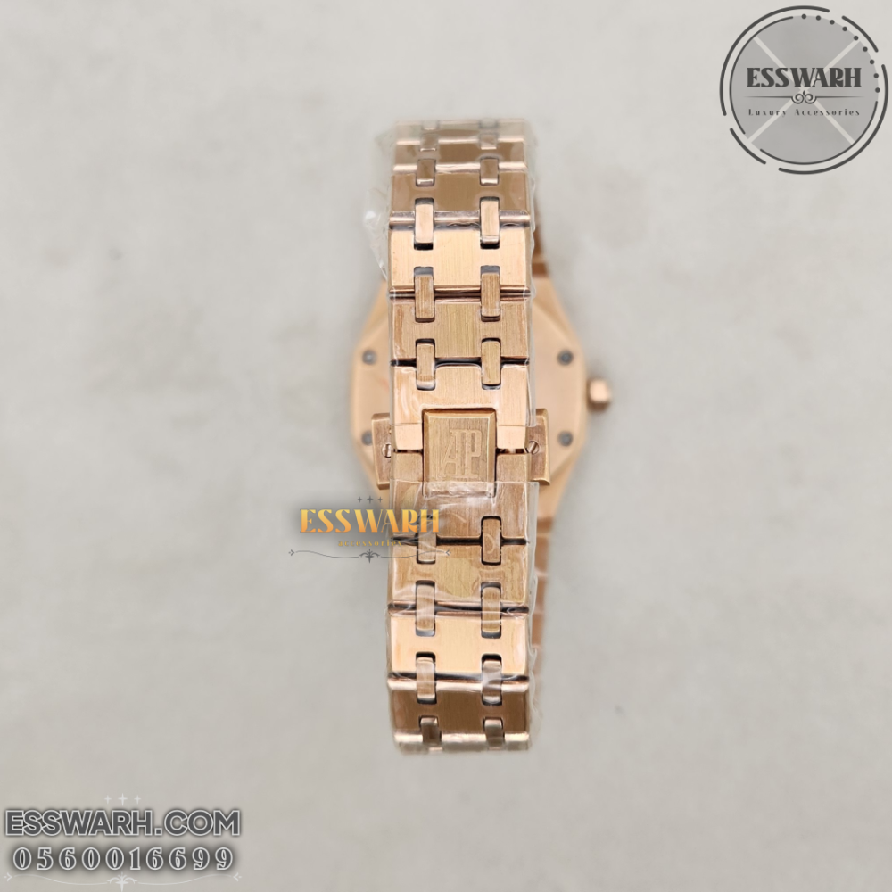 Audemars Piguet Luxury Women - Royal Oak - Rose Gold Enamel Gray Stainless Steel Belt Batteries, Cell Without Seconds, Size 32