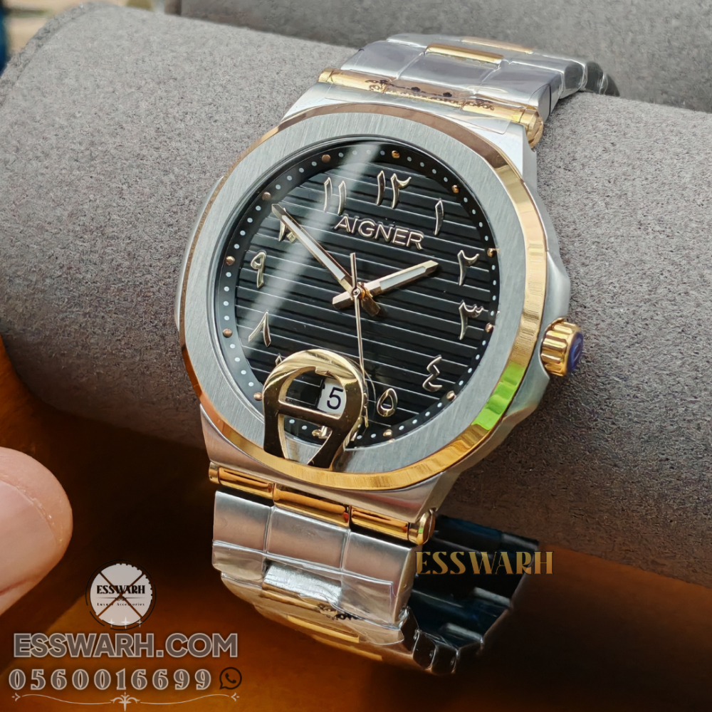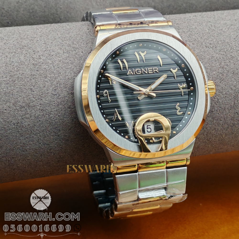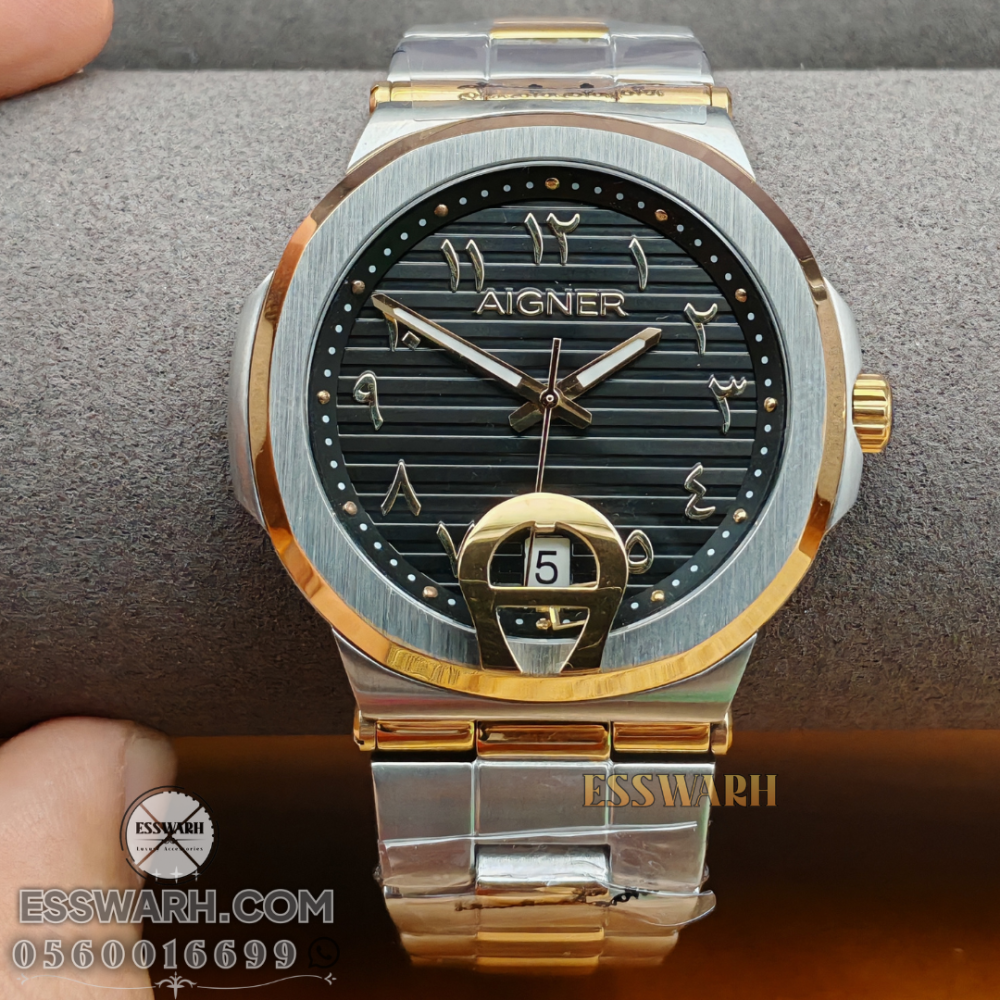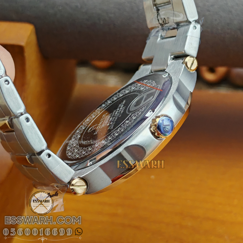 Dial: Black, gilded Arabic numerals, gilded bezel